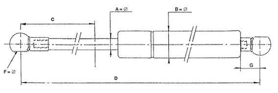 Gázrugó L=540-800 N mindkét oldalon nejlon gömbfejjel /stabilus/